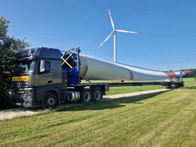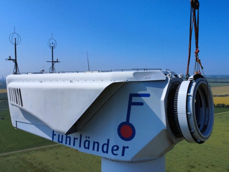 An einer Windenergieanlage vom Typ Fuhrländer FL1000 mit 70 m Nabenhöhe wurde ein Rotorblattaustausch durchgeführt. Das Rotorblatt LM26.1 mit einem Eigengewicht von 4,5 t wurde mithilfe einer Hebetraverse an der Nabe montiert.