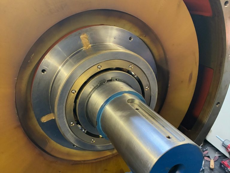 Aufgrund eines Defekts am ölgeschmierten Rotorlager wurde der Rotor gemeinsam mit dem bestehenden Lager demontiert. Vor der Installation der neuen fettgeschmierten Rotorlager-Einheit (MBU) des Herstellers Eolotec, war eine Überarbeitung des Maschinenträgers erforderlich. Im Anschluss erfolgt die Remontage des Rotorlagers und des Rotors.