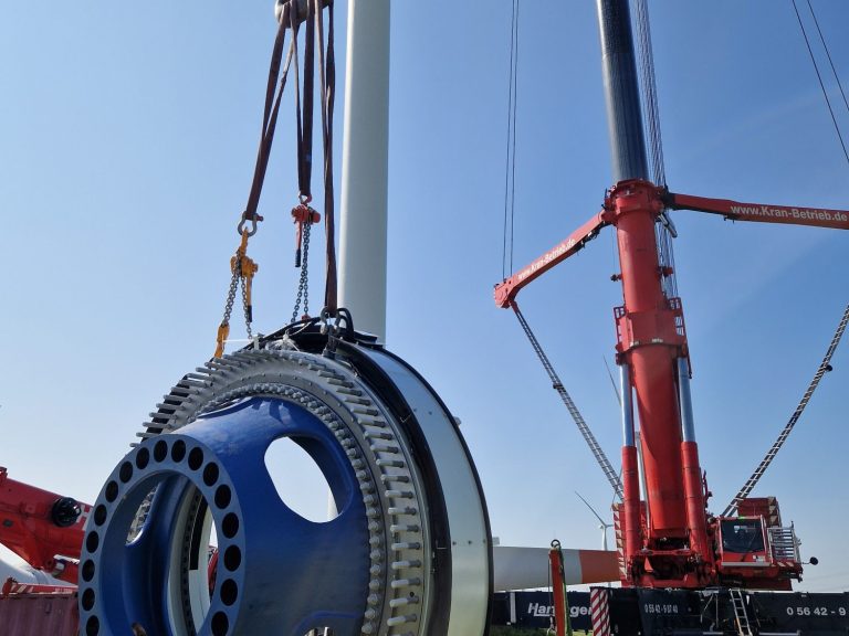 An einer Senvion 3XM wurde ein defektes Blattlager ausgetauscht. Dabei kam kein Großkran zum Einsatz, sondern das bodengestützte Windensystem (BGWS). Das 16 Tonnen schwere und 56 Meter lange Rotorblatt wurde über eine Seilstrecke kontrolliert abgelassen und anschließend mithilfe eines 100-t-Hilfskrans waagerecht am Boden abgelegt. Danach erfolgte der Austausch des Blattlagers.